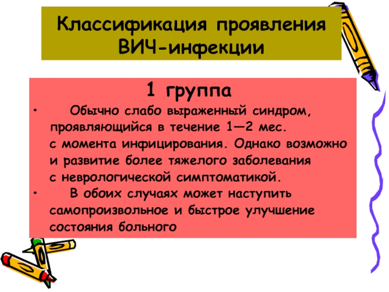 Слайд 15Классификация проявления ВИЧ-инфекции