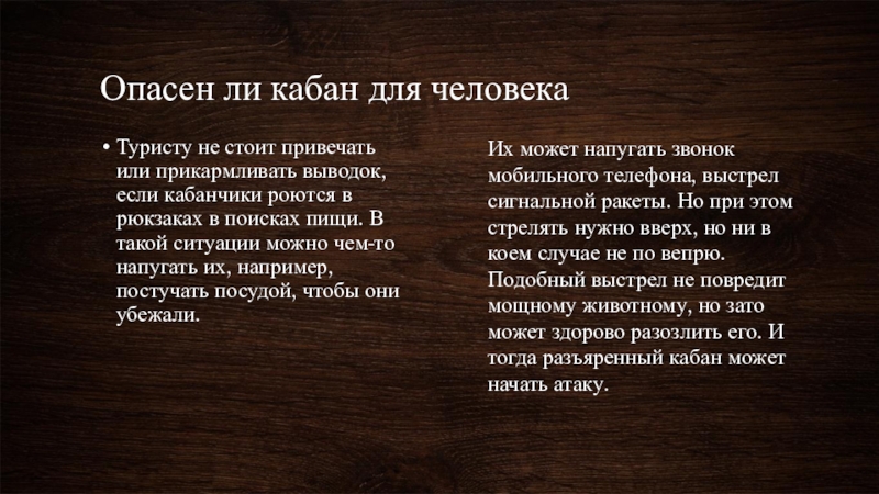 Их может напугать звонок мобильного телефона, выстрел сигнальной ракеты. Но при этом стрелять нужно вверх, но ни в коем случае не по вепрю. Подобный выстрел не повредит мощному животному, но зато может здорово разозлить его. И тогда разъяренный кабан может начать атаку.