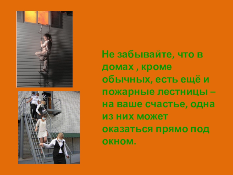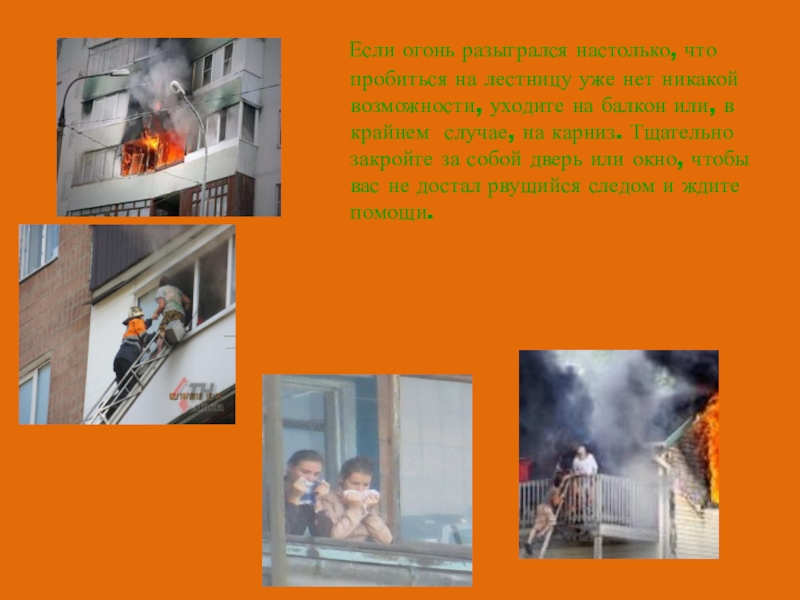 Слайд 13 Если огонь разыгрался настолько, что пробиться на лестницу уже