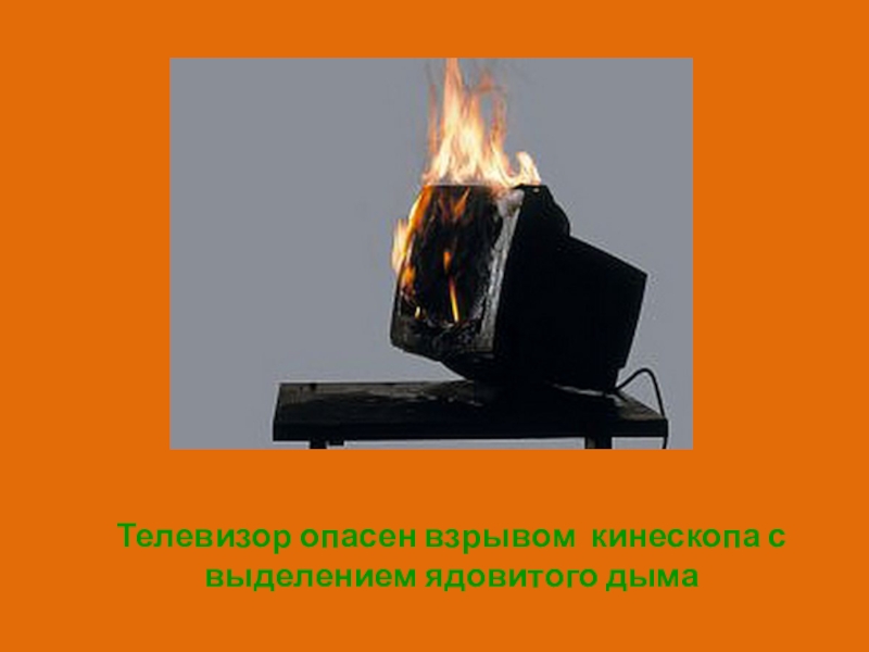 Слайд 7Телевизор опасен взрывом кинескопа с выделением ядовитого дыма