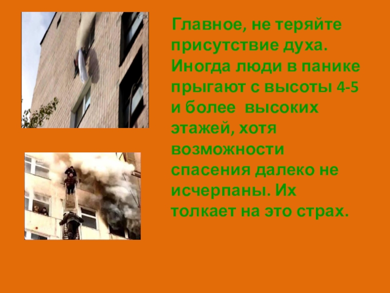 прыгают с высоты 4-5 и более высоких этажей, хотя возможности спасения далеко не исчерпаны. Их толкает на это страх.