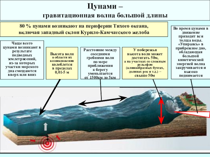 «Упираясь» в прибрежное дно, обладающая большой кинетической энергией волна закручивается и высоко поднимается
