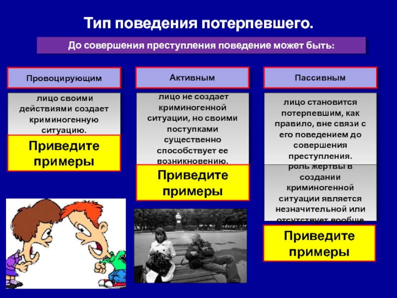 лицо становится потерпевшим, как правило, вне связи с его поведением до совершения преступления.