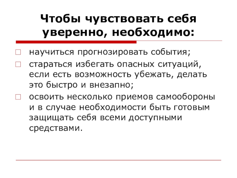 Слайд 8Чтобы чувствовать себя уверенно, необходимо: