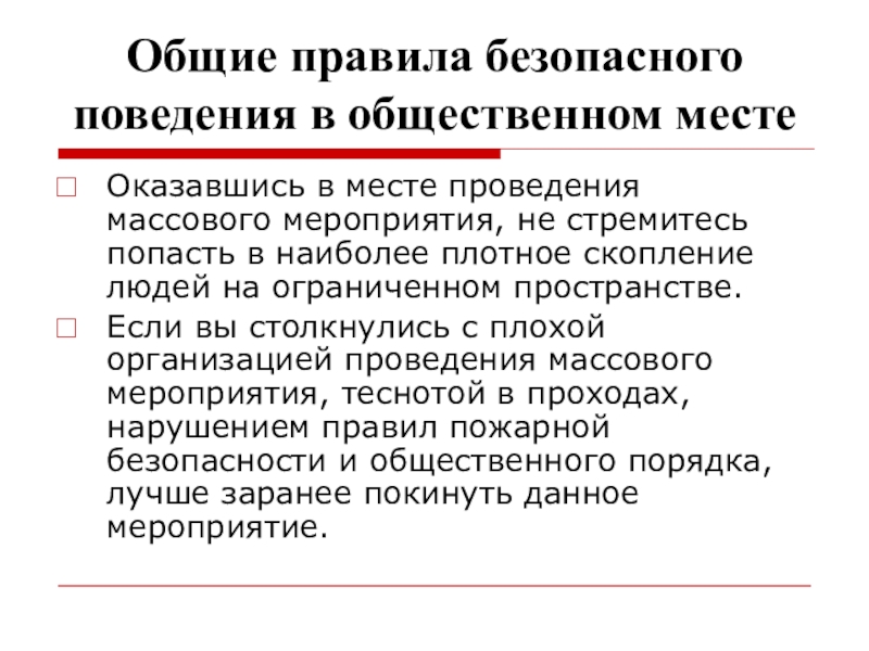 Слайд 11Общие правила безопасного поведения в общественном месте