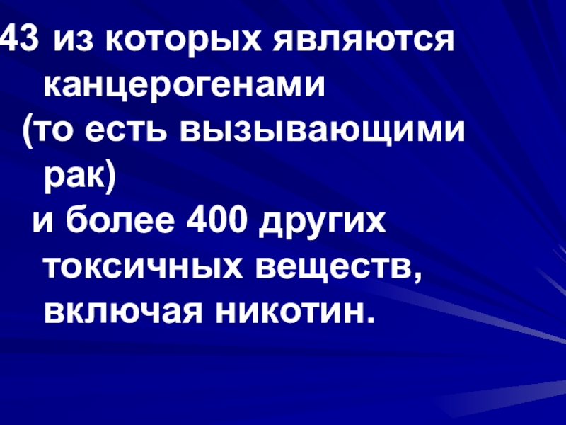 из которых являются канцерогенами (то есть вызывающими рак) и более 400 других токсичных веществ, включая никотин.