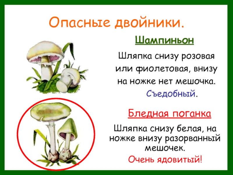Шляпка снизу белая, на ножке внизу разорванный мешочек.