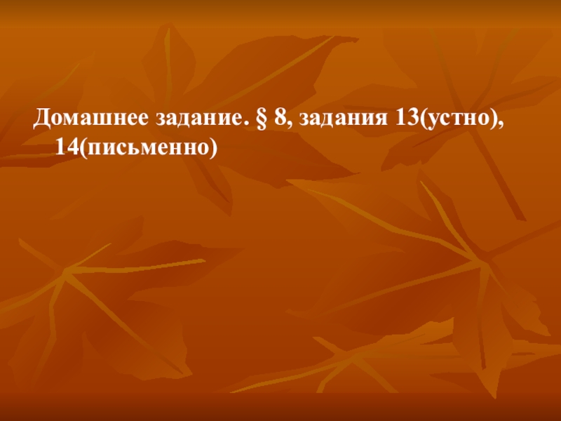 Домашнее задание. § 8, задания 13(устно), 14(письменно)