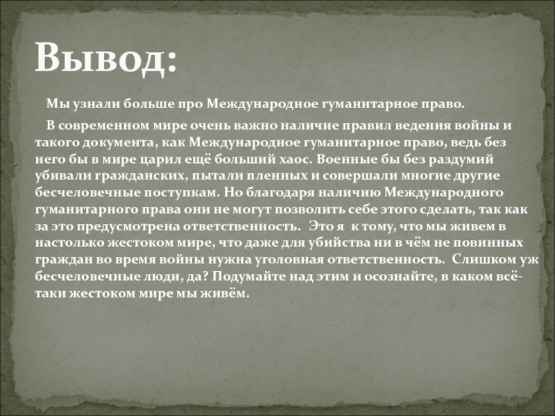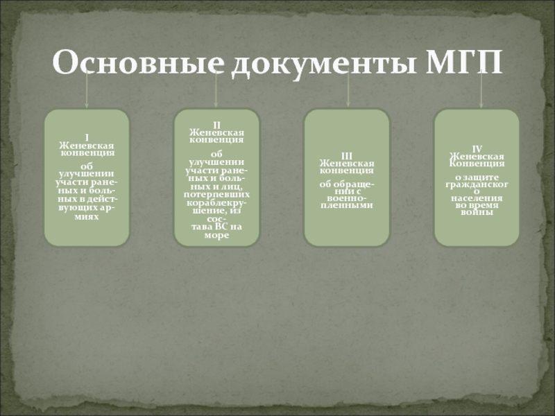 Таким образом, у истоков возникновения международного гуманитарного права стоит Женевская конвенция 1864 года. Однако сам термин «международное гуманитарное право» возник гораздо позднее, а именно в 50-х годах XX века, и впервые был предложен известным швейцарским юристом Жаном Пикте.