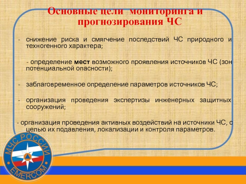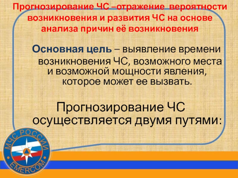 возникновения ЧС, возможного места и возможной мощности явления, которое может ее вызвать.