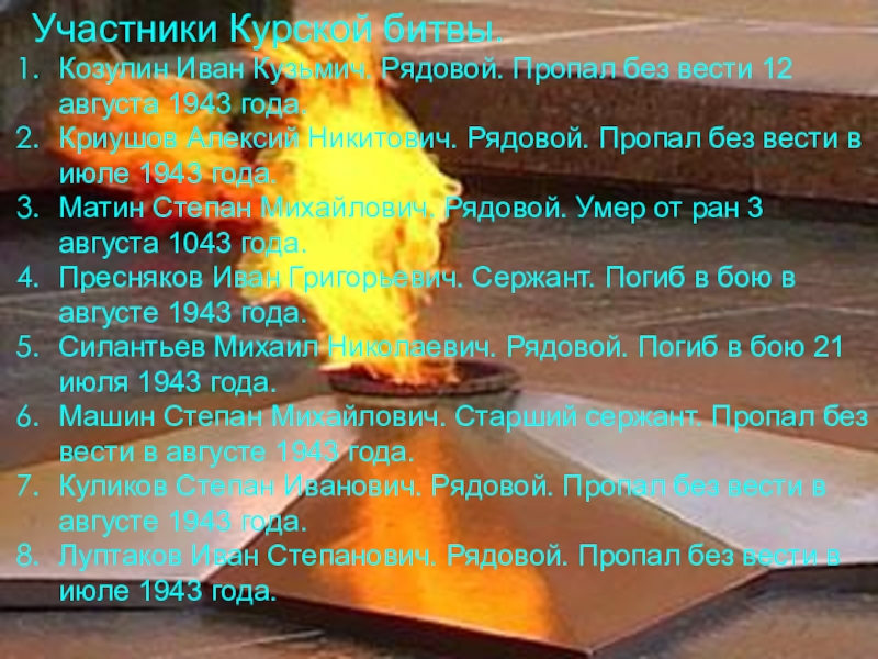 Козулин Иван Кузьмич. Рядовой. Пропал без вести 12 августа 1943 года.