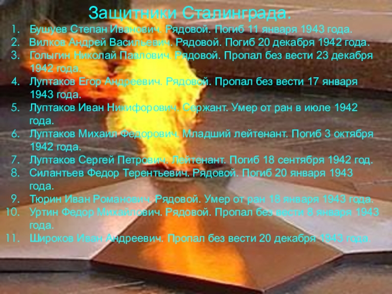 Бушуев Степан Иванович. Рядовой. Погиб 11 января 1943 года.