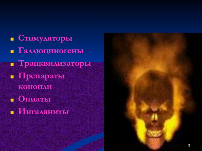 СтимуляторыГаллюциногеныТранквилизаторыПрепараты коноплиОпиатыИнгалянитыОсновные группы наркотиков