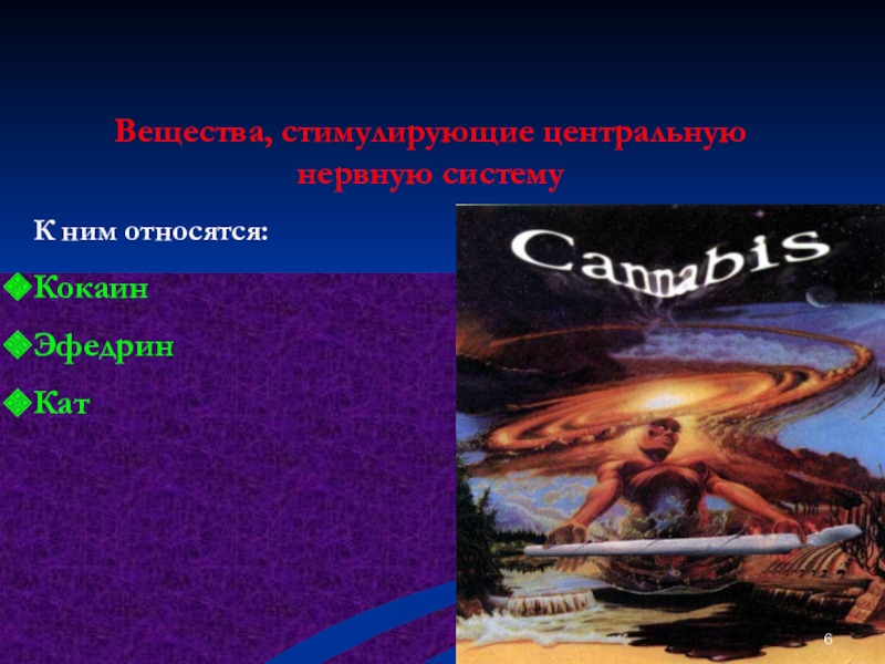 Вещества , получаемые из различных сортов конопли. Вызывают гашишную наркоманию (гашишизм).