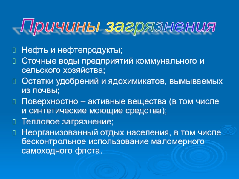 Причины загрязнения