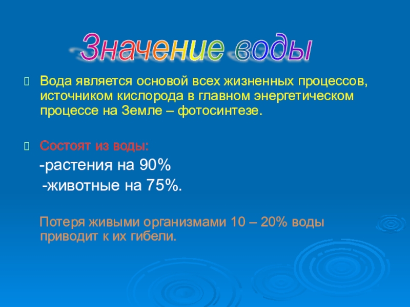 Значение воды