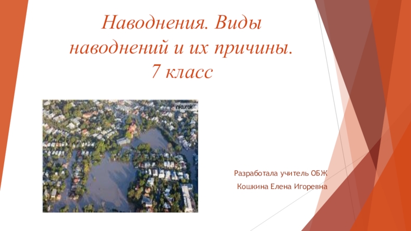 Наводнения. Виды наводнений и их причины. 7 класс Разработала учитель ОБЖКошкина Елена Игоревна