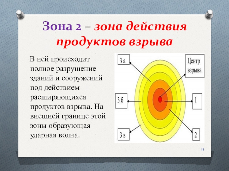 Слайд 9Зона 2 – зона действия продуктов взрыва