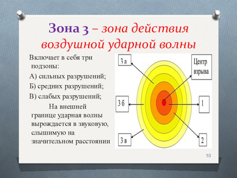 Слайд 10Зона 3 – зона действия воздушной ударной волны