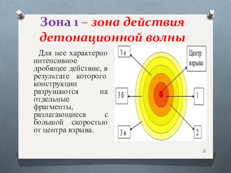Слайд 8Зона 1 – зона действия детонационной волны