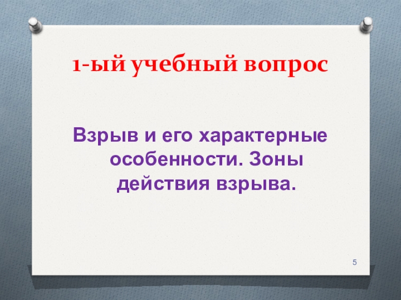1-ый учебный вопросВзрыв и его характерные особенности. Зоны действия взрыва.