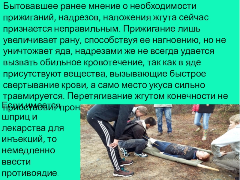 Если через несколько дней пострадавший почувствует себя плохо, то его надо немедленно транспортировать в медпункт.