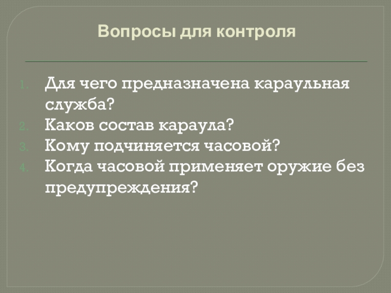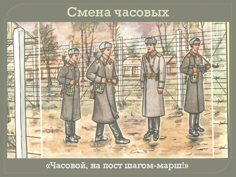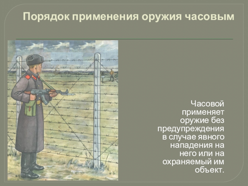 Часовым называется вооруженный караульный, выполняющий боевую задачу по охране и обороне