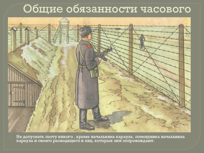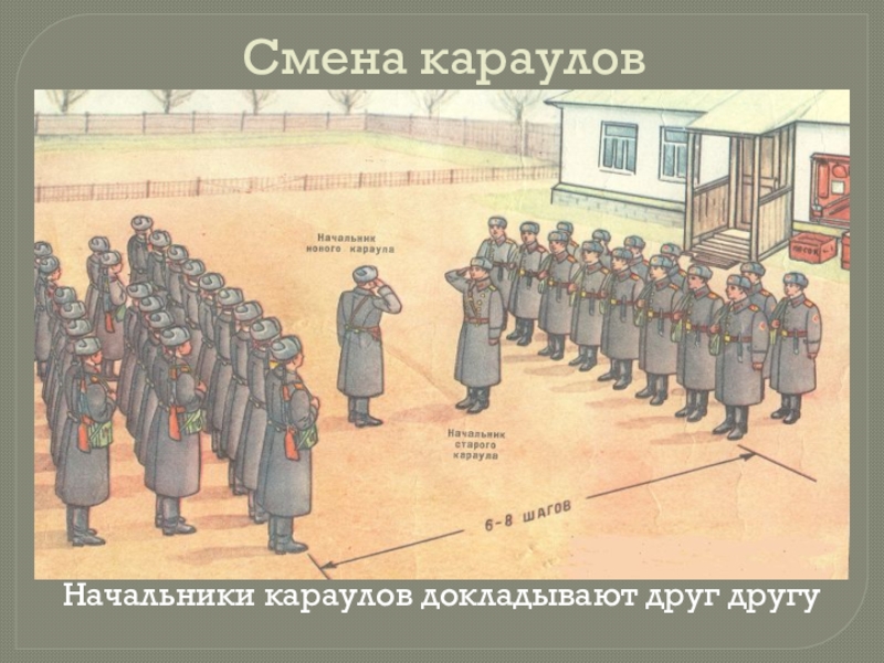 бодро, ничем не отвлекаться, не выпускать из рук оружие и никому не отдавать его, включая лиц, которым он подчинен;