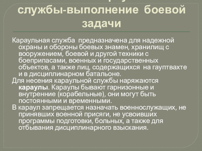 Слайд 7Несение караульной службы- выполнение боевой задачи