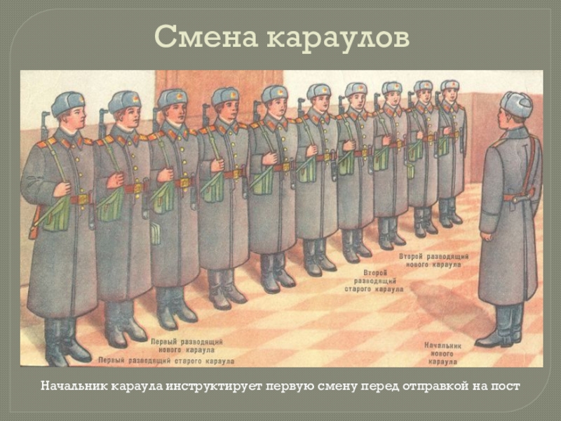 Начальник караула инструктирует первую смену перед отправкой на пост