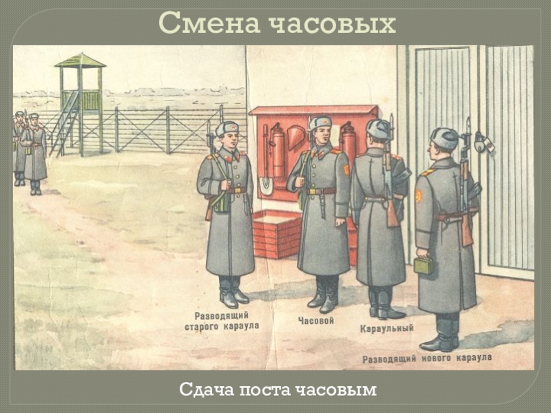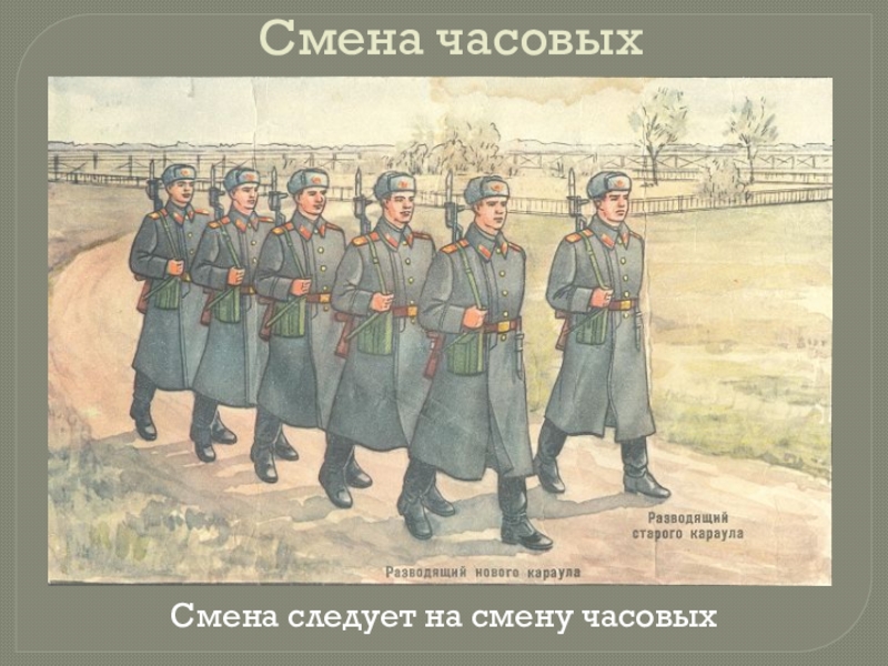 Часового имеют право сменить или снять с поста только начальник караула, помощник начальника караула и разводящий, которому подчинен часовой.