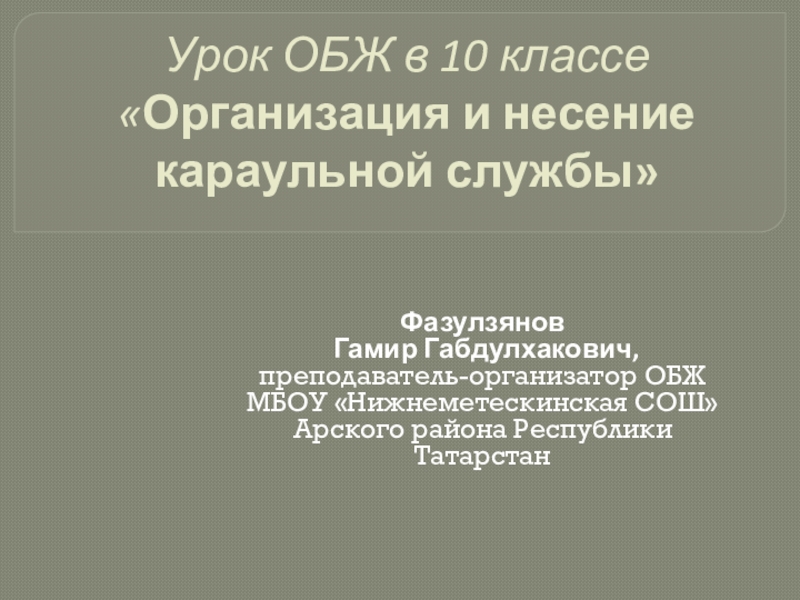Слайд 1Урок ОБЖ в 10 классе «Организация и несение караульной службы»