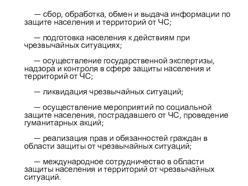 — международное сотрудничество в области защиты населения и территорий от чрезвычайных ситуаций.