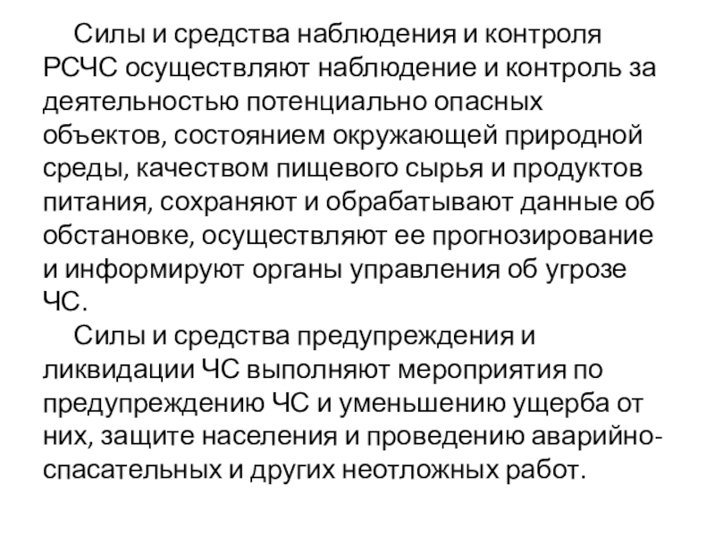 Слайд 17 Силы и средства наблюдения и контроля РСЧС осуществляют наблюдение и контроль