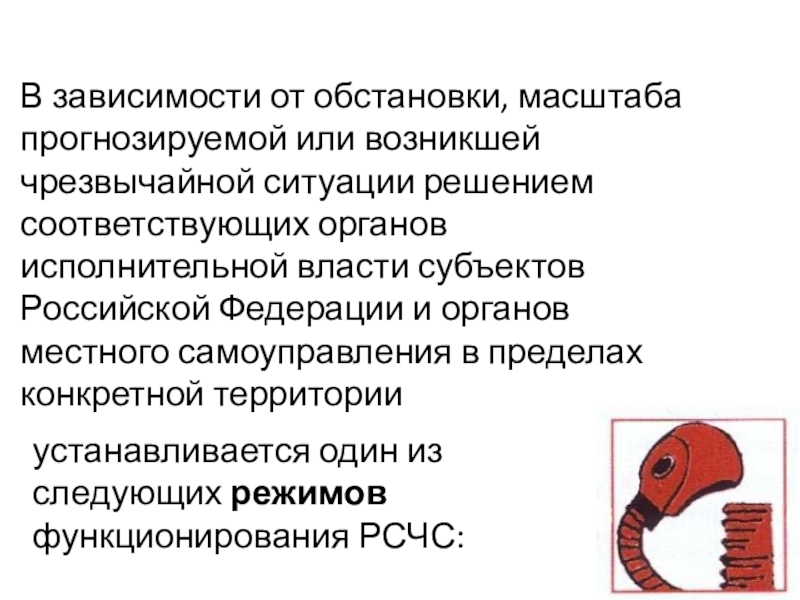 Слайд 13В зависимости от обстановки, масштаба прогнозируемой или возникшей чрезвычайной ситуации решением