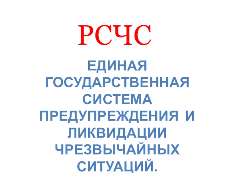 Слайд 6Единая государственная система предупреждения и ликвидации ЧС (РСЧС)