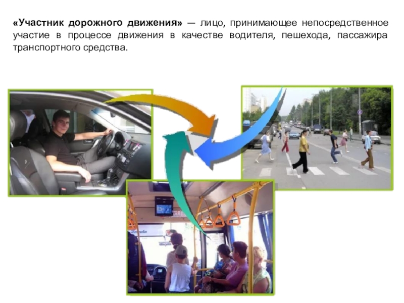 «Пассажир» — лицо, кроме водителя, находящееся в транспортном средстве (на нем), а также лицо, которое входит в транспортное средство (садится на него) или выходит из транспортного средства (сходит с него).