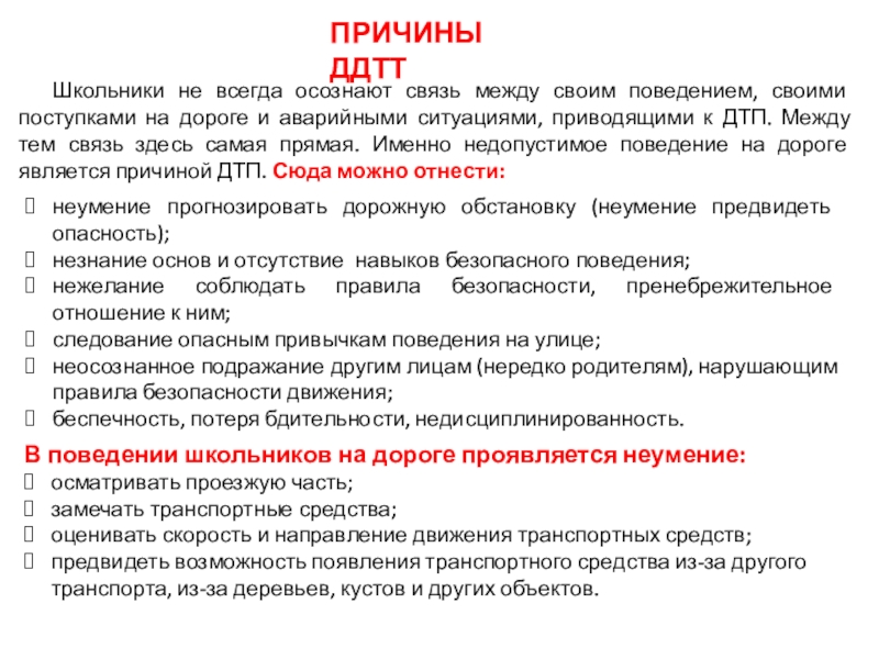 неосознанное подражание другим лицам (нередко родителям), нарушающим правила безопасности движения;