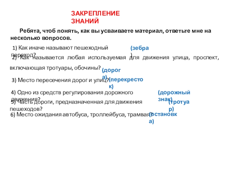 ЗАКРЕПЛЕНИЕ ЗНАНИЙ