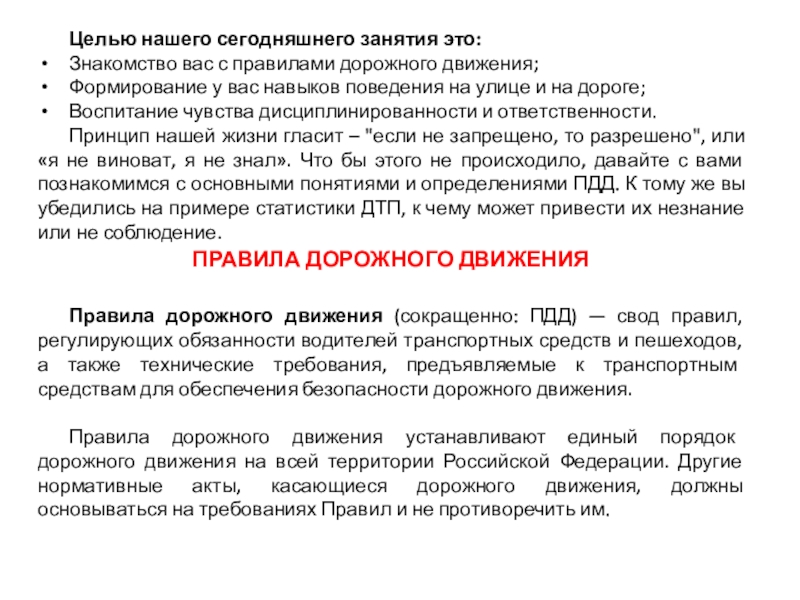 Принцип нашей жизни гласит – "если не запрещено, то разрешено", или «я не виноват, я не знал». Что бы этого не происходило, давайте с вами познакомимся с основными понятиями и определениями ПДД. К тому же вы убедились на примере статистики ДТП, к чему может привести их незнание или не соблюдение.