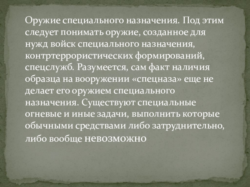 Слайд 2Оружие специального назначения. Под этим следует понимать оружие, созданное для нужд