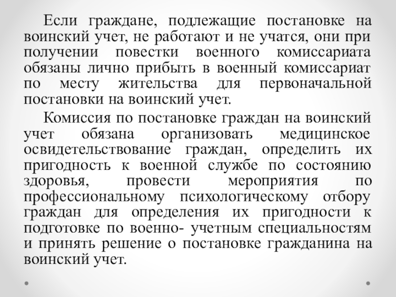 Слайд 8 Если граждане, подлежащие постановке на воинский учет, не работают и не