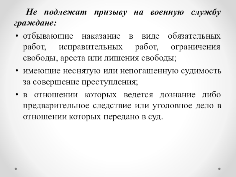 Слайд 14 Не подлежат призыву на военную службу граждане: