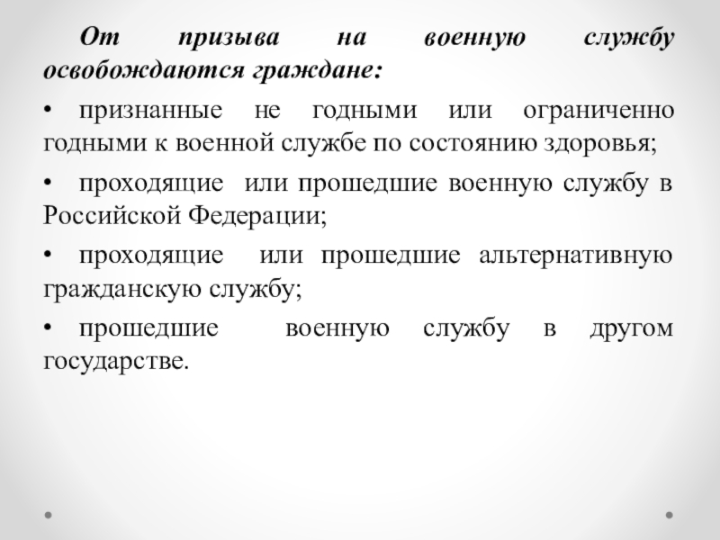 Слайд 13 От призыва на военную службу освобождаются граждане: