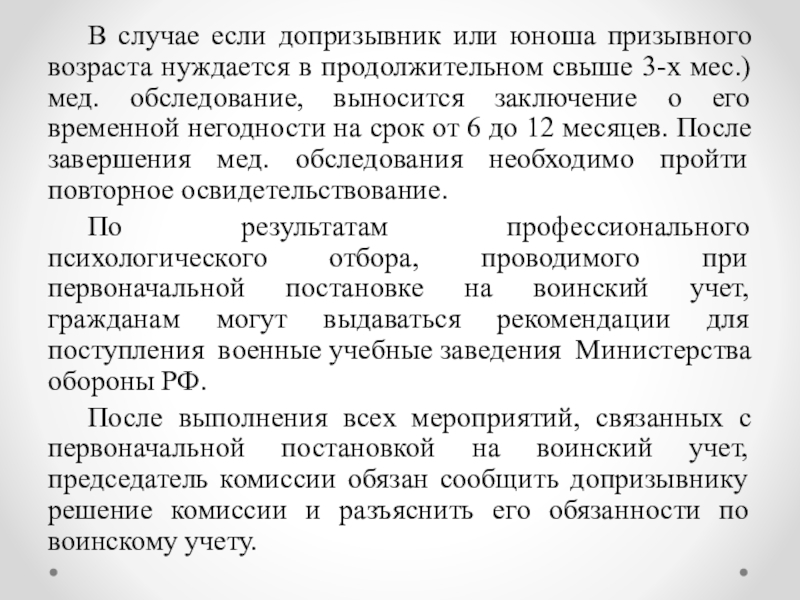 Слайд 11 В случае если допризывник или юноша призывного возраста нуждается в продолжительном