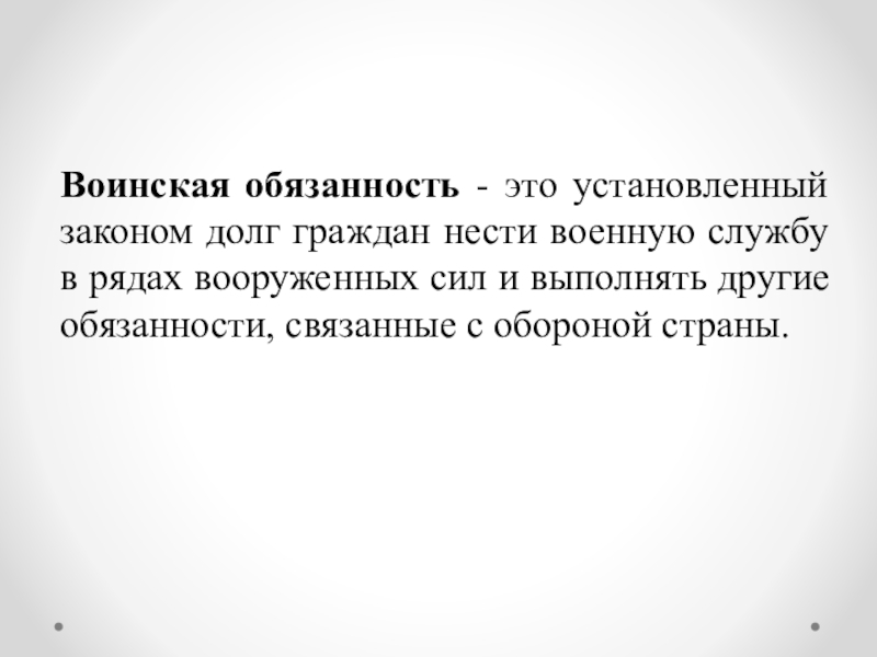 Слайд 2Воинская обязанность - это установленный законом долг граждан нести военную службу