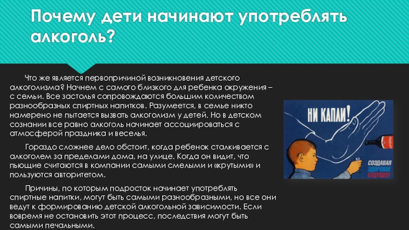 Слайд 2Почему дети начинают употреблять алкоголь?