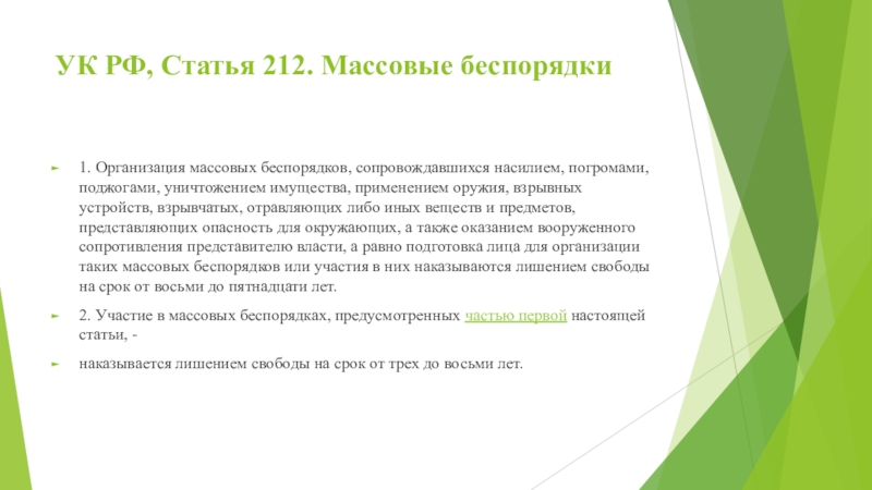 Слайд 6УК РФ, Статья 212. Массовые беспорядки