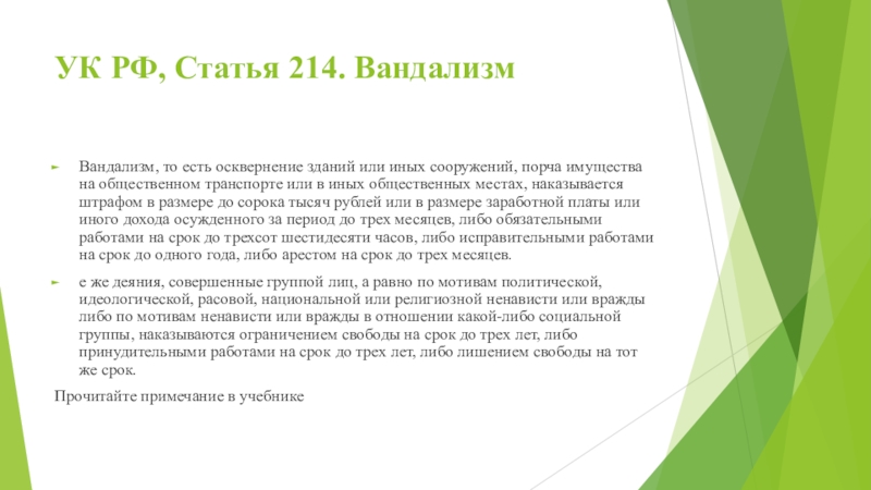Слайд 10УК РФ, Статья 214. Вандализм