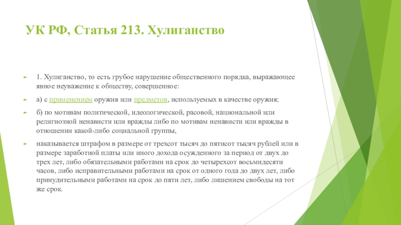 Слайд 8УК РФ, Статья 213. Хулиганство